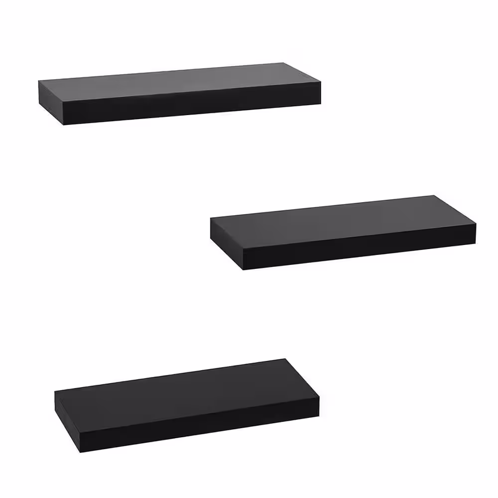 Cubilan 5.9 in. x 15 in. x 1.35 in. Black Wood Floating Decorative Wall Shelves (Set of 3)