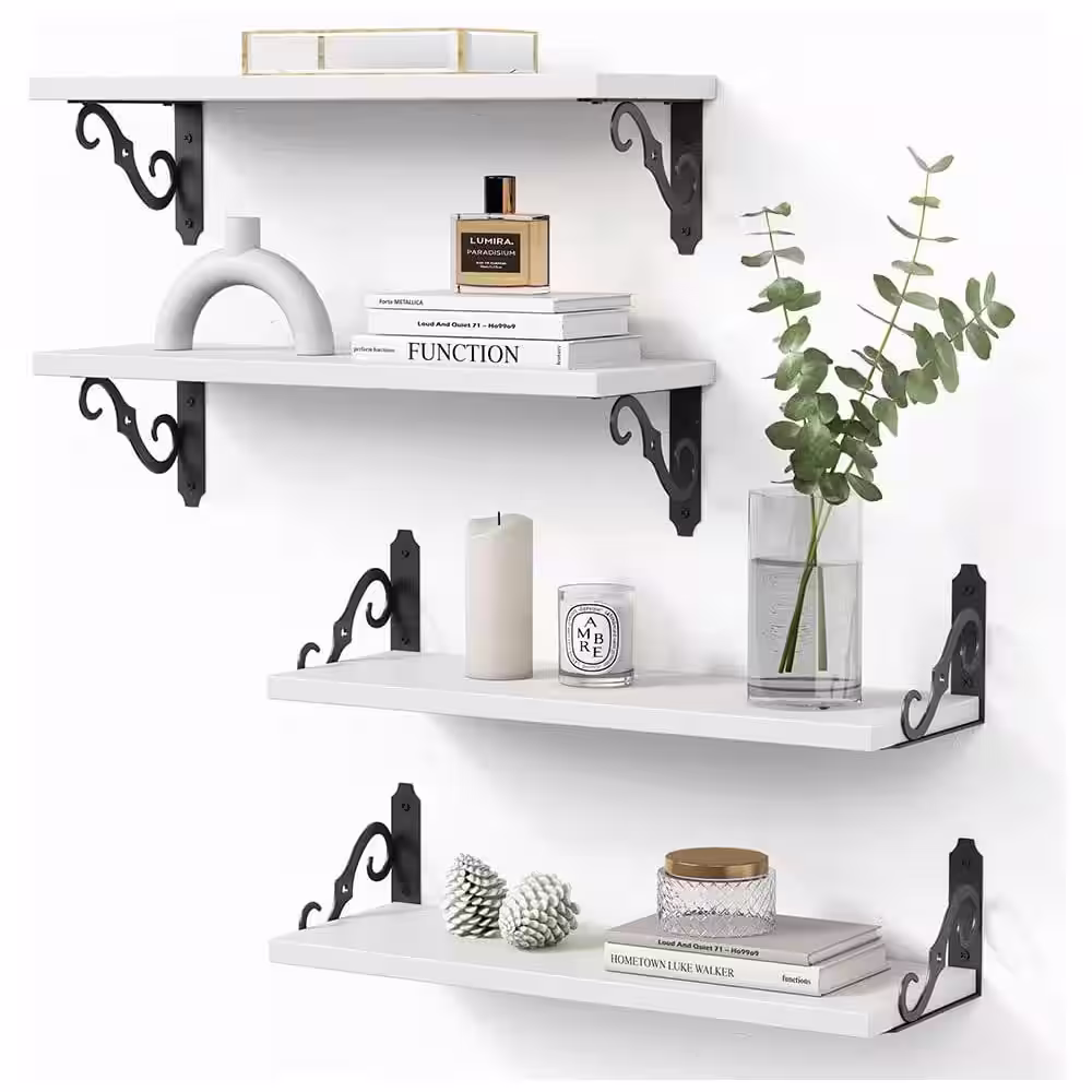 None 17 in. W x 6 in. D White Wood Decorative Wall Shelf Floating Shelves with Brackets Set of 4
