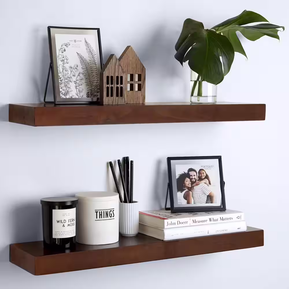 None 24 in. W x 6 in. D Light Walnut Wood Decorative Wall Shelf - Set Of 4