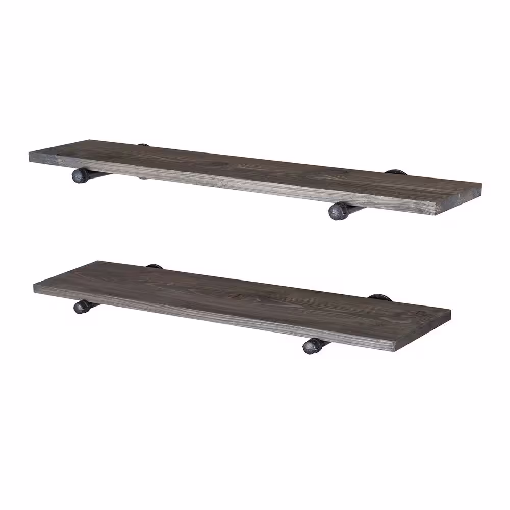 PIPE DECOR 36 in. W x 9 in. D Boulder Black Pine Wood Wall Mounted Decorative Wall Shelf with Black Industrial Pipe Brackets
