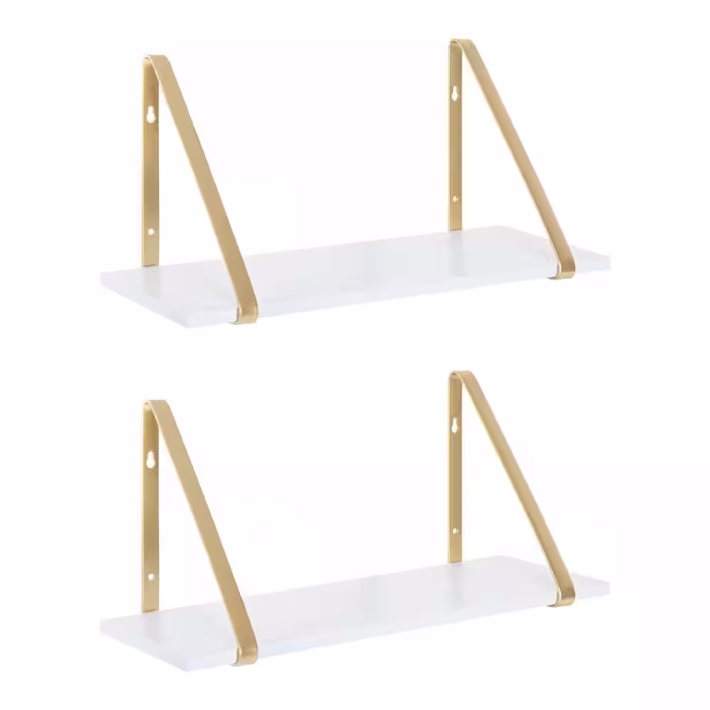 Kate and Laurel Soloman 18 in. x 8 in. x 8 in. White/Gold Decorative Wall Shelf