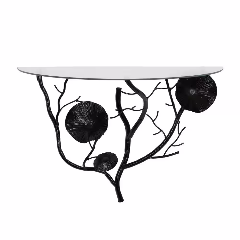 Litton Lane 23.75 in. W x 11.88 in. D Black Branch Metal Floral Decorative Wall Shelf with Glass Top