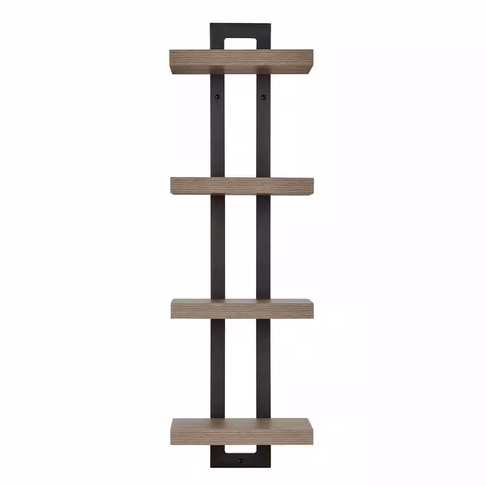 DANYA B 11 in. W x 7.6 in. D x 36 in. Walnut Black Metal 4-Tier Ladder Bracket Floating Decorative Wall Shelf