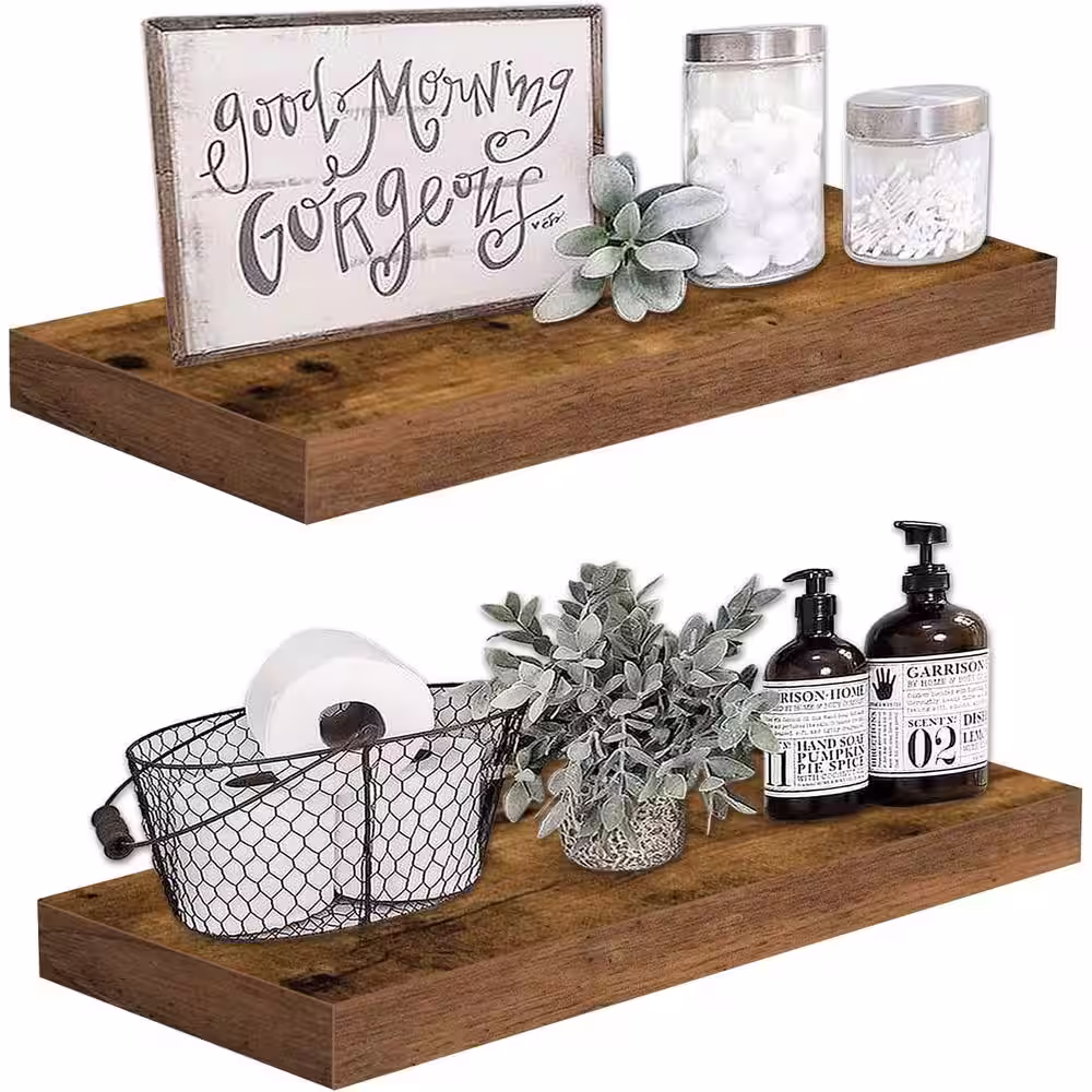 None 23.6 in. W x 9.3 in. D Rustic Brown Wood Decorative Wall Shelf Set of 2