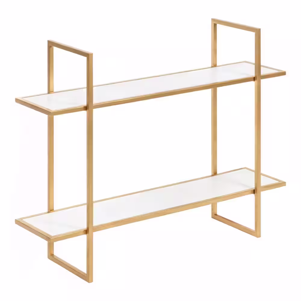 Kate and Laurel Leigh 30 in. x 24 in. x 8 in. White/Gold Decorative Wall Shelf
