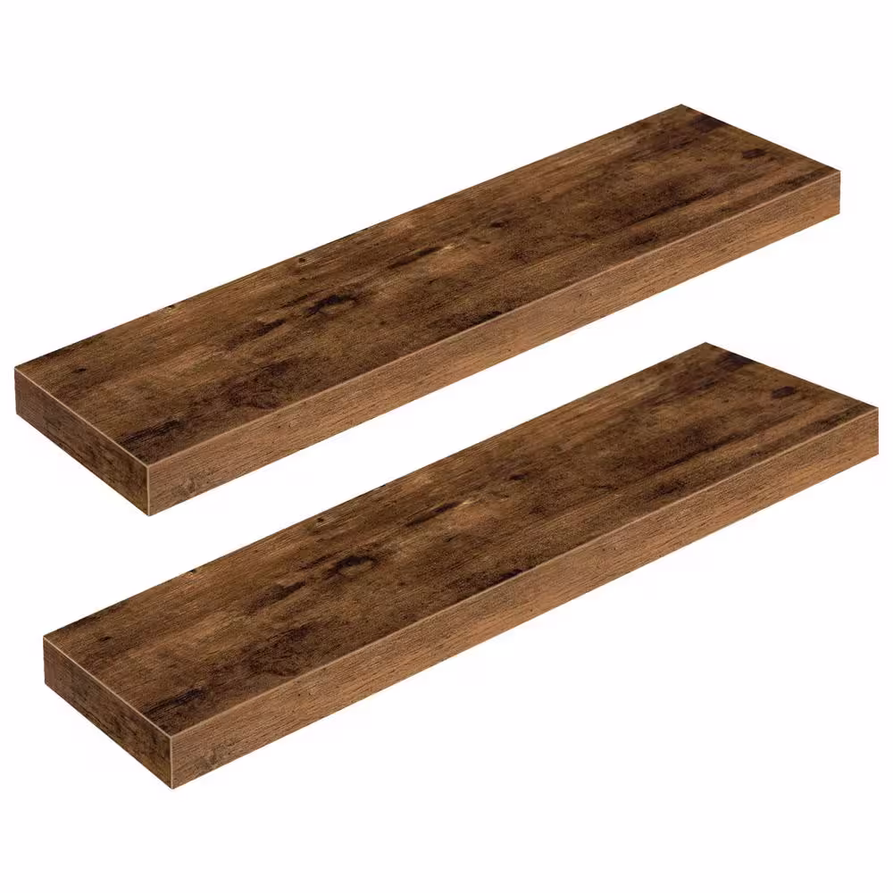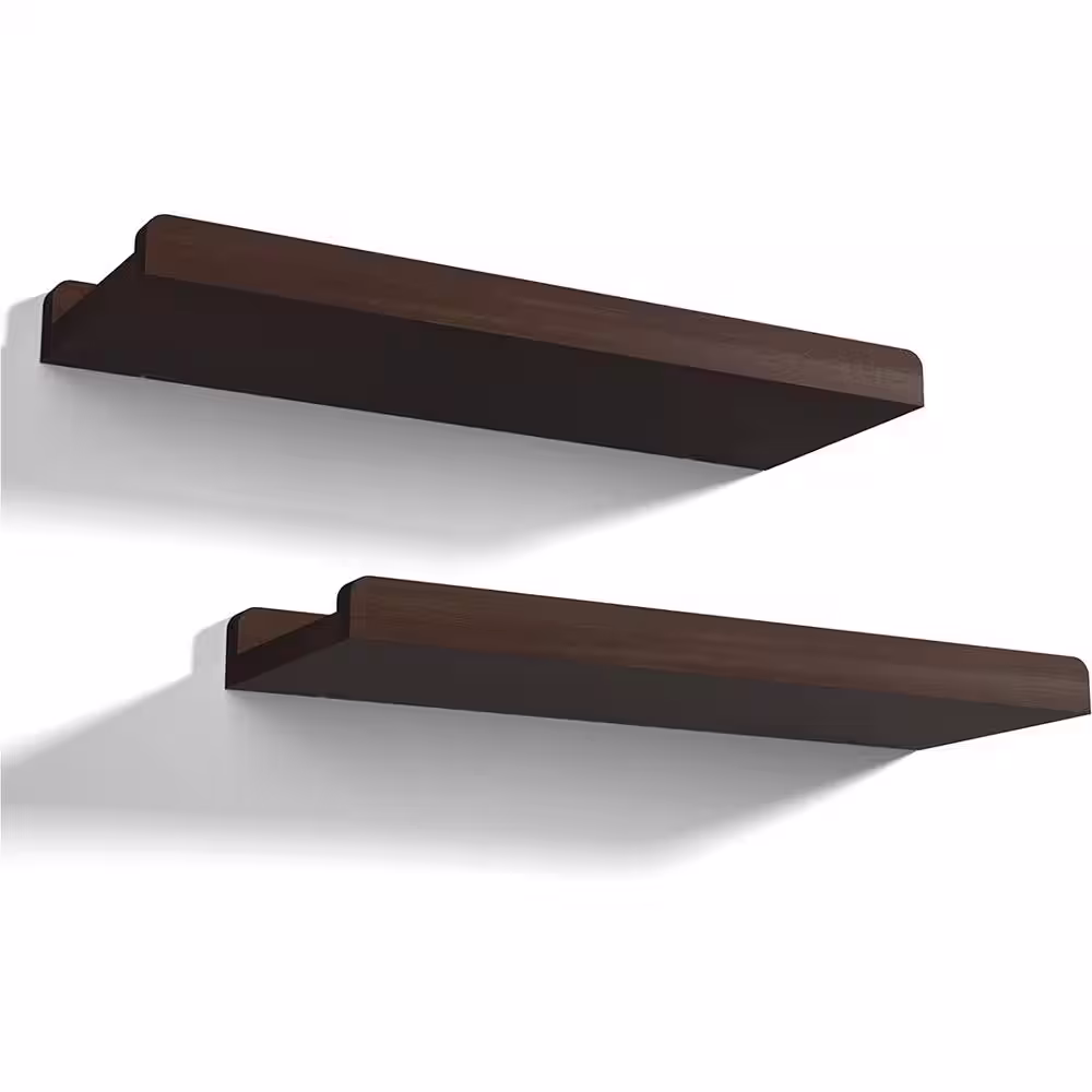None 17 in. W x 6 in. D Dark Walnut Wood Decorative Wall Shelf Floating Shelves Wall Mounted Set of 2
