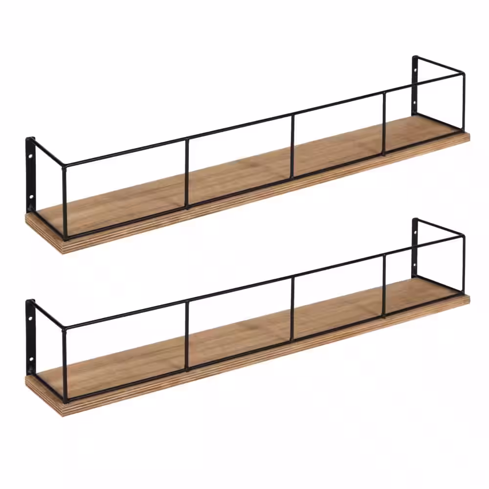 Honey-Can-Do Black/Rustic Steel and Wood Floating Decorative Wall Shelves (Set of 2)