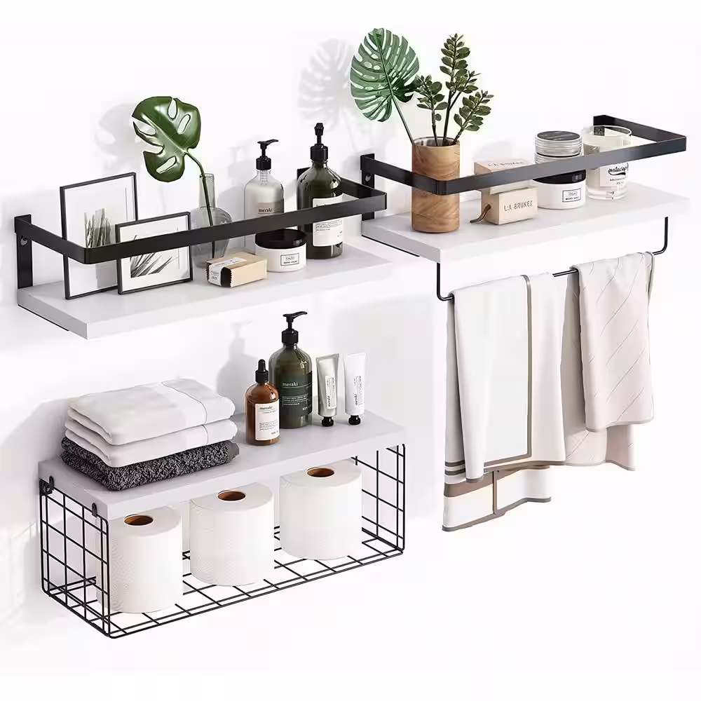 None 17 in. W x 6.7 in. D White Wood Decorative Wall Shelf Floating Shelves, Set of 3
