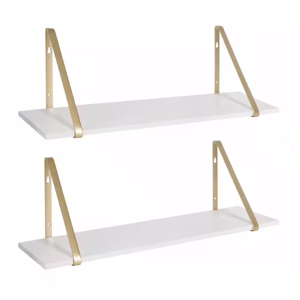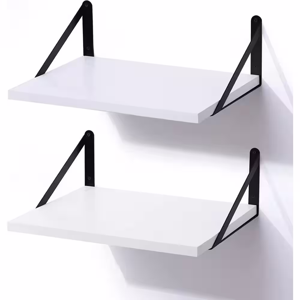 None 17 in. W x 12 in. D White Wood Decorative Wall Shelf Floating Shelves Decorative Wall Shelf Set of 2