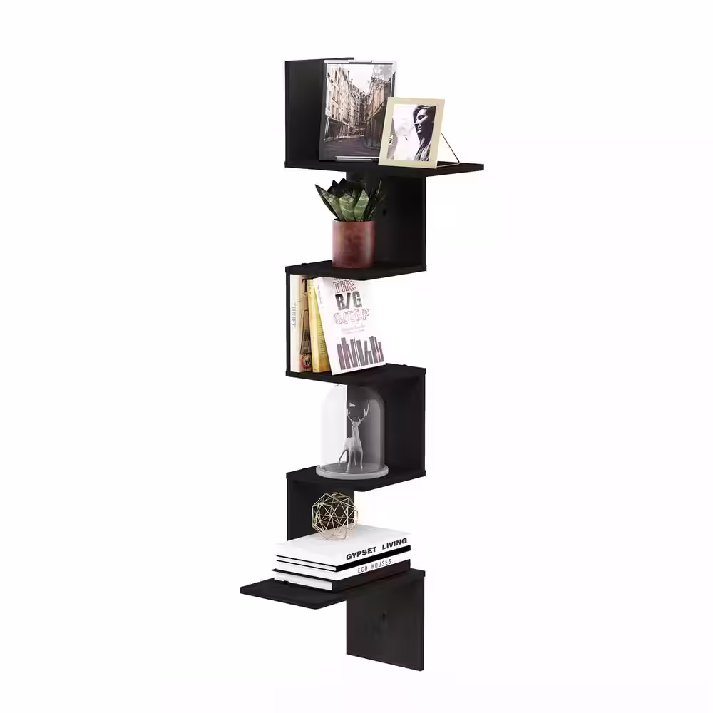 Furinno Rossi Modern 13 in. x 13 in. x 49 in. Espresso Wood Decorative Wall Shelf