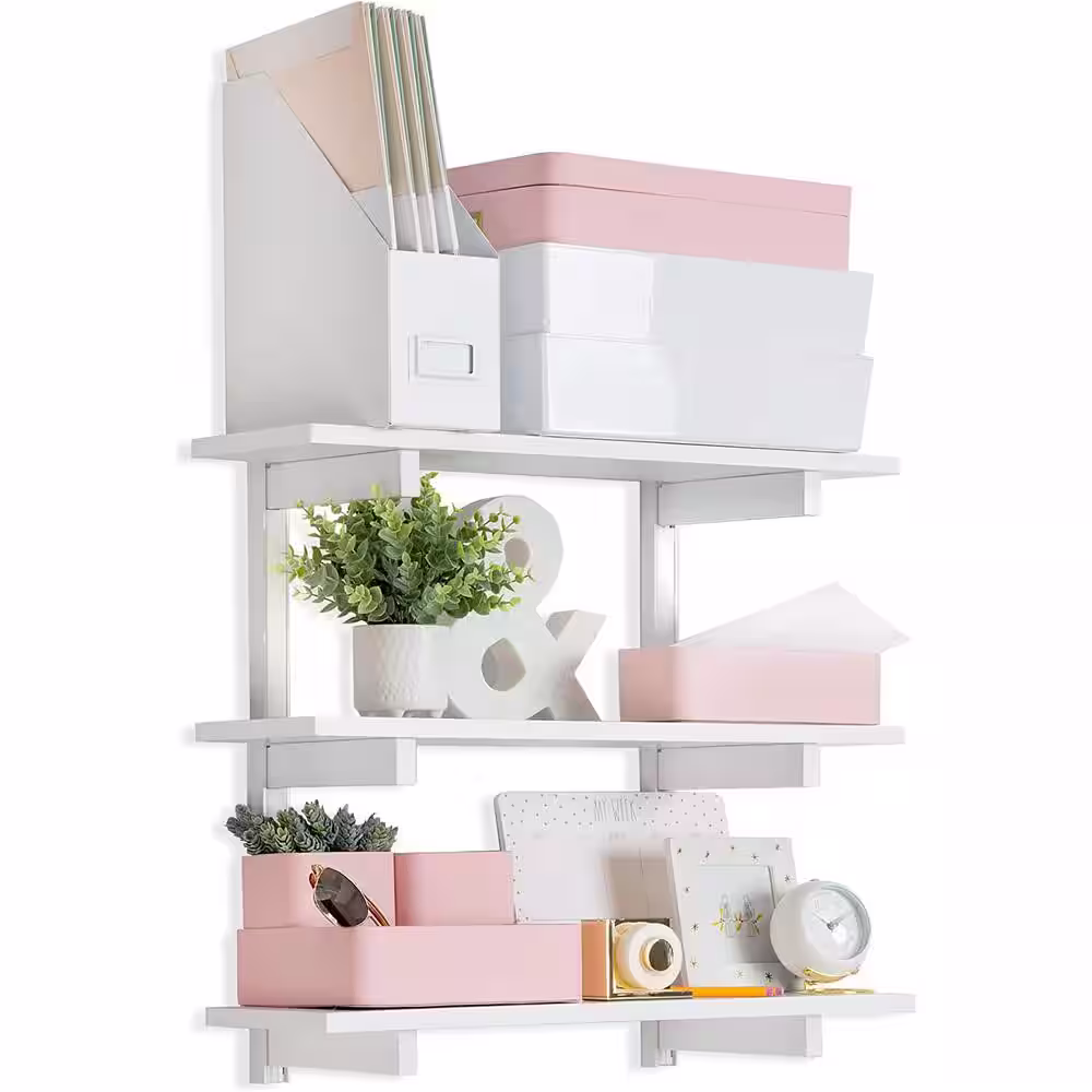 None Delta 3-Tier Adjustable Premium Decorative Wall Shelf Kit with Shelves White