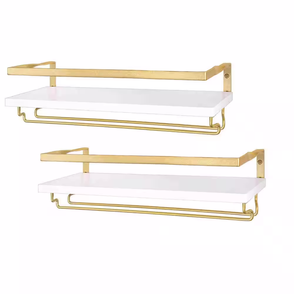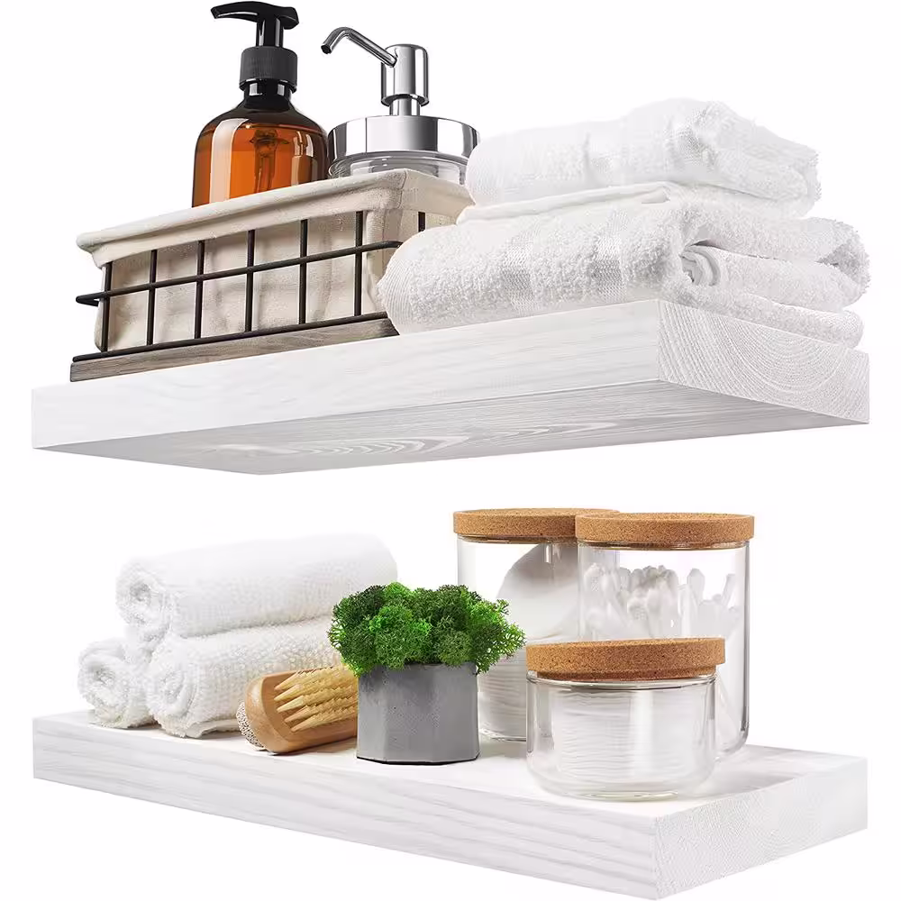 None 15.7 in. W x 6.7 in. D White Wood Bathroom Shelves Over Toilet Floating Farmhouse Set of 2 Decorative Wall Shelf