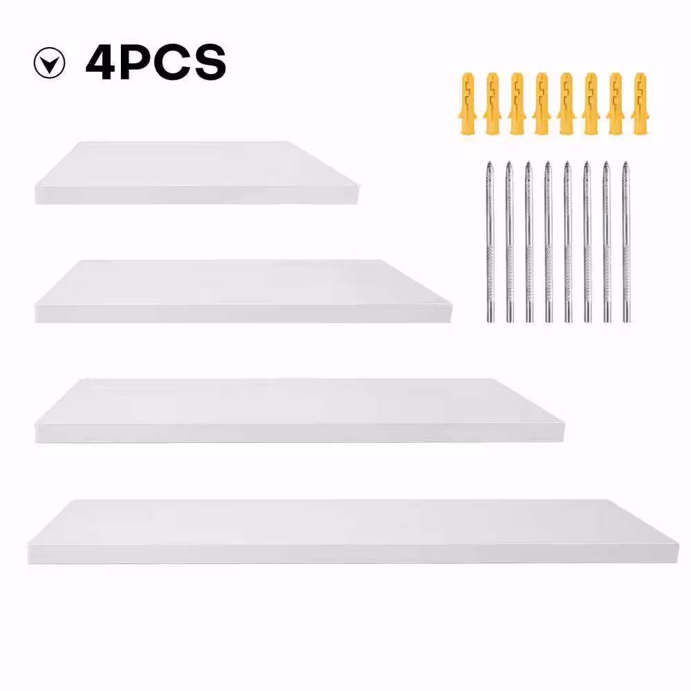 None 4-Piece 5.9 in. W x 19.6 in. D White Floating Wood Decorative Wall Shelves Storage Rack Bookcase for Kitchen Bathroom