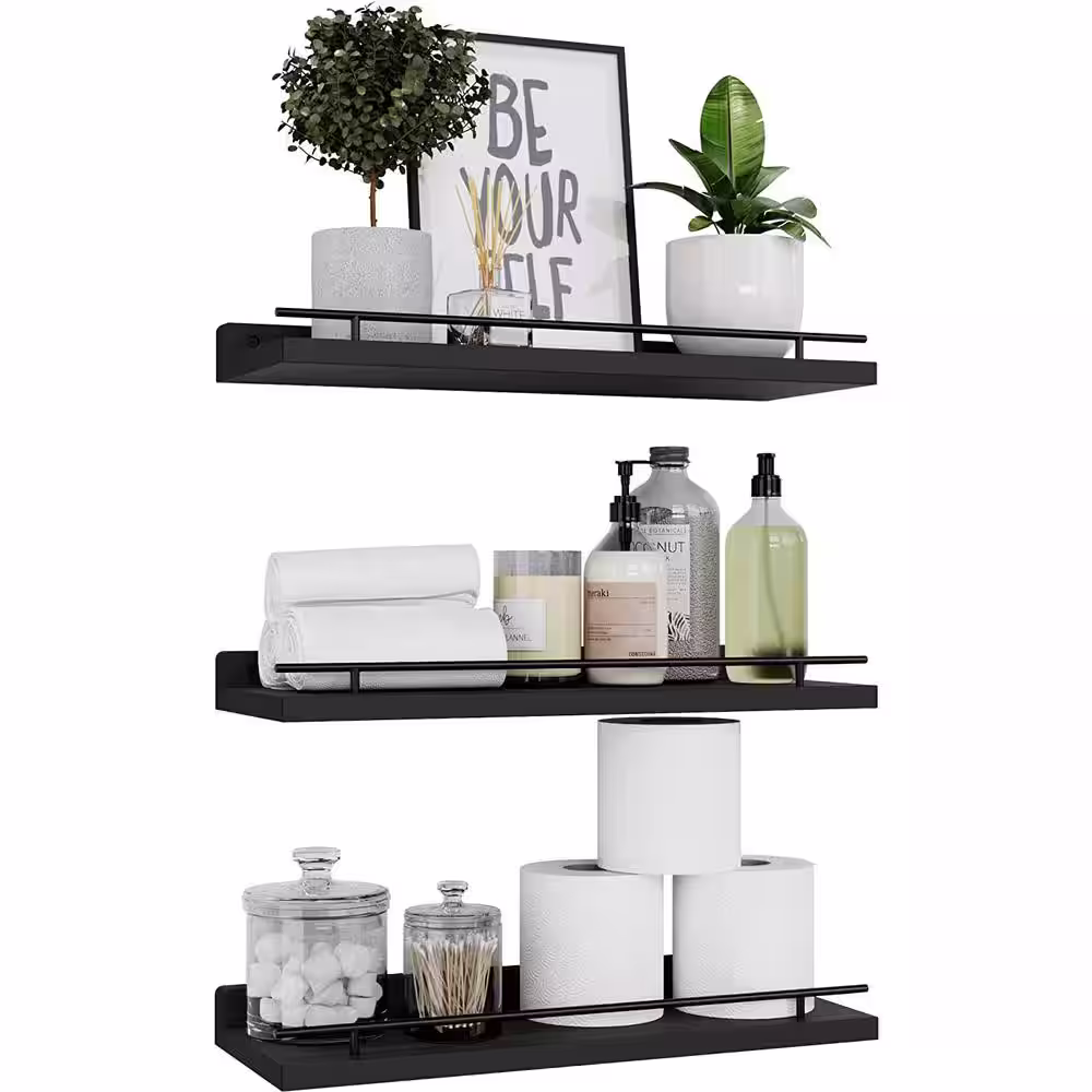 None 15.7 in. W x 6 in. D Black Wood Composite Decorative Wall Shelf Floating Shelves, Set of 3