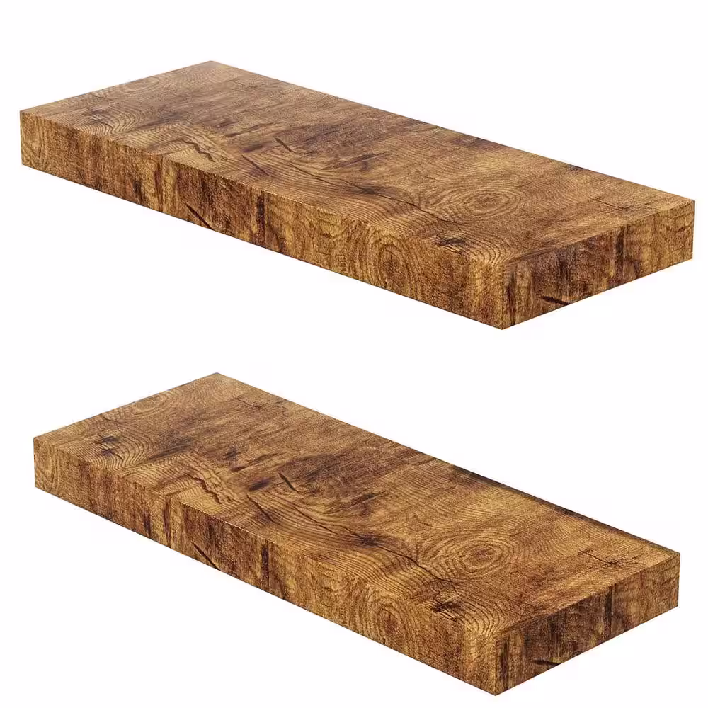 None 23.6 in. W x 9 in. D Rustic Brown Floating Decorative Wall Shelf Set of 2