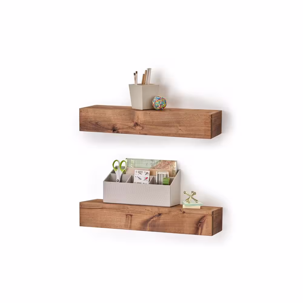 PIPE DECOR 24 in. x 8 in. x 1 in. Trail Brown Solid Pine Live Edge Wall Shelf (Set of 2)