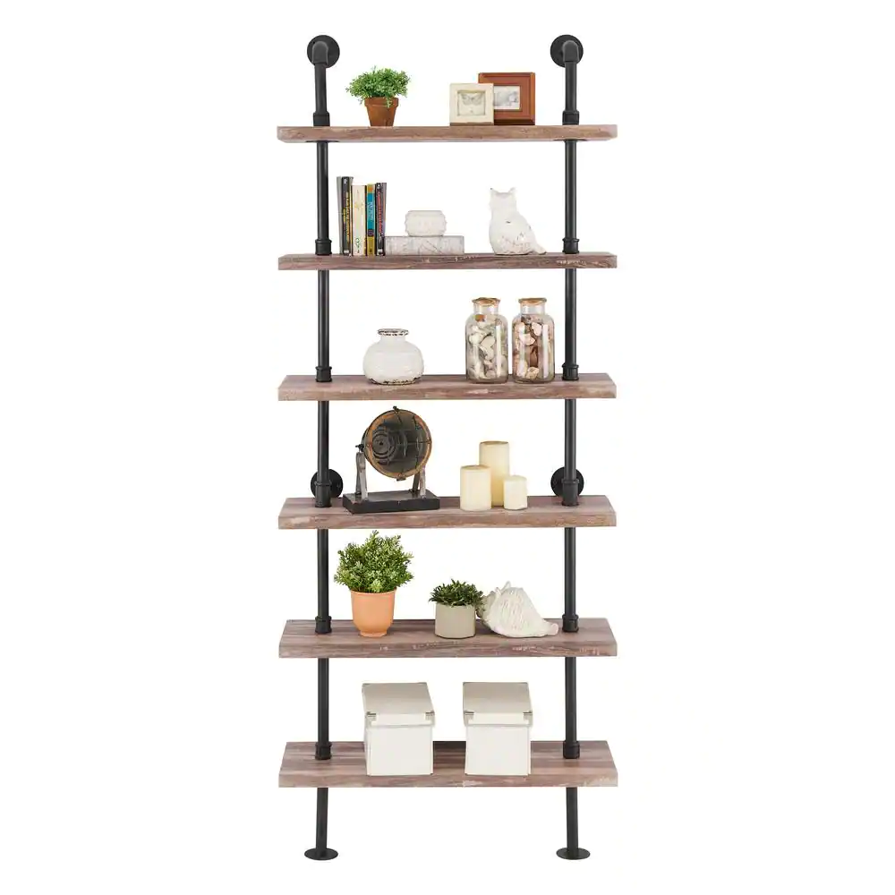 DANYA B 10 in. x 32 in. x 78 6 Tier Brown Distressed Wood Finish Decorative Wall Shelf
