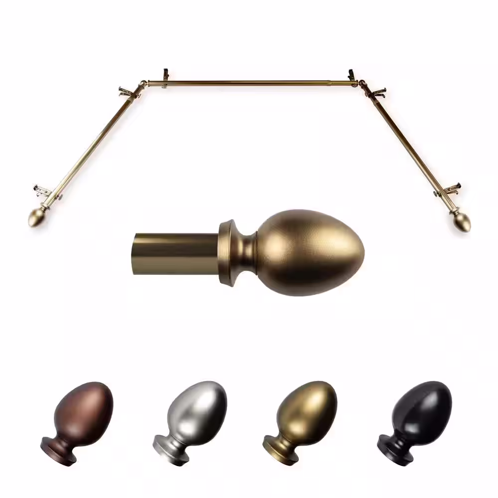 EMOH Tomesha 20-36 in. sides, 38-72 in. center Adjustable Bay Window Curtain Rod 13/16 in. in Antique Brass with Finial