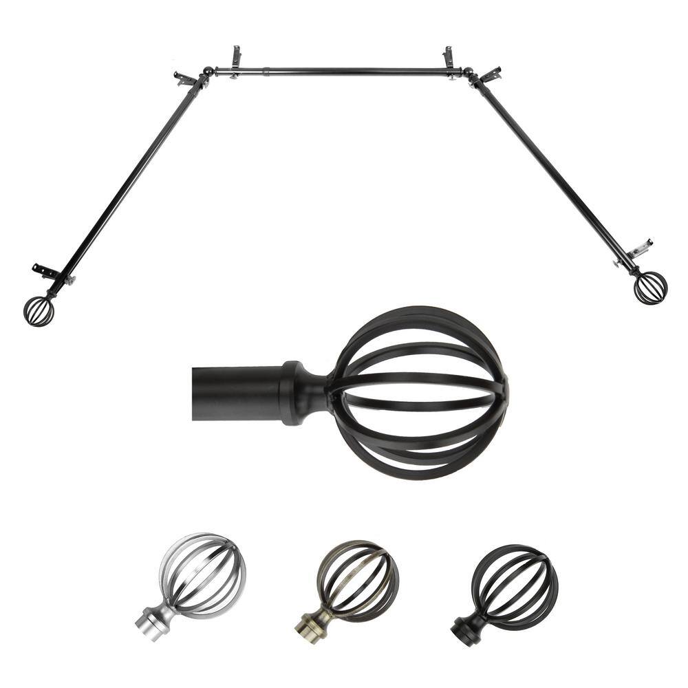 EMOH 13/16" Dia Adjustable 20"-36", 38"-72" Bay Window Curtain Rod with Leoni Finials in Black