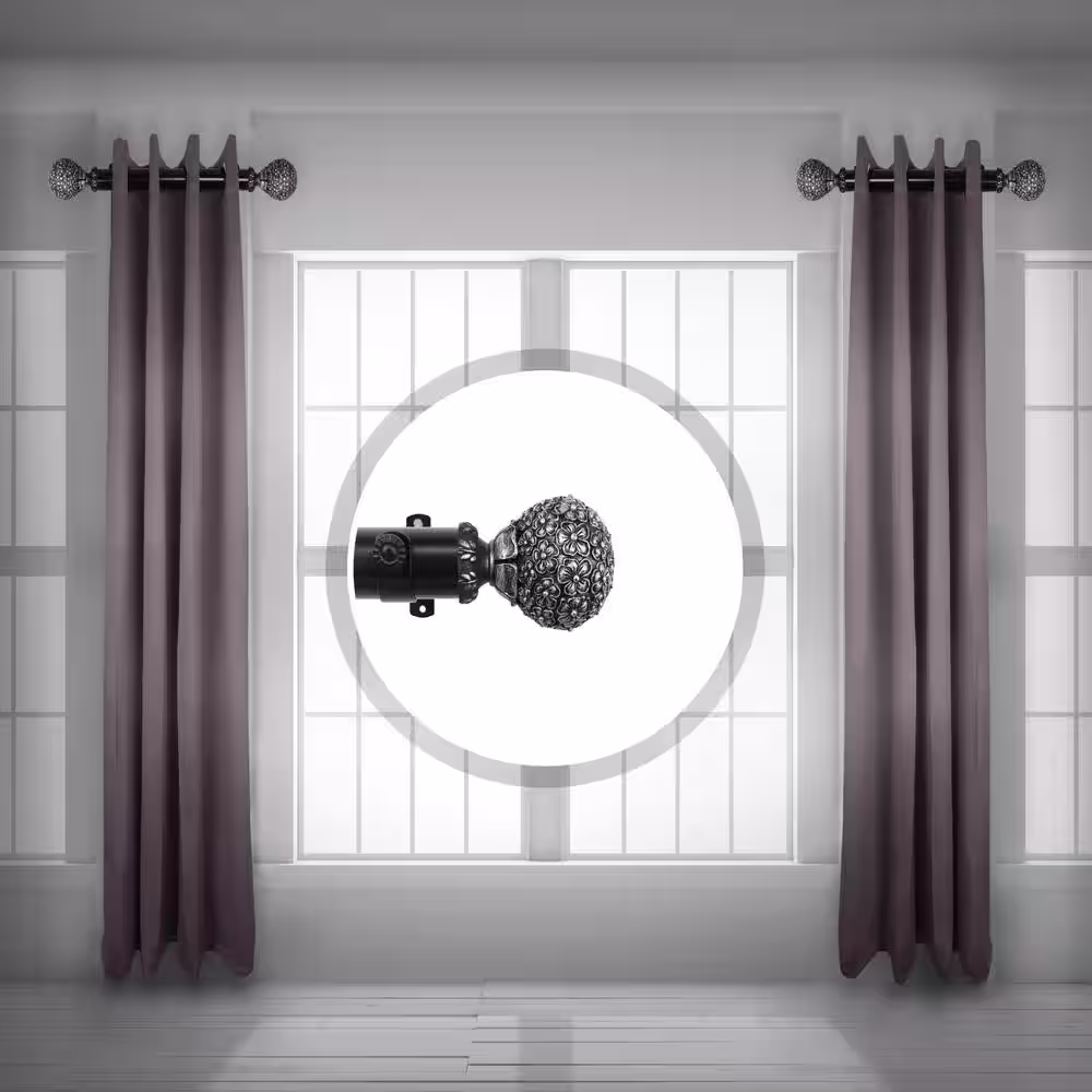 The Artifactory 5 ft. Fixed Length 1 in. Dia. Metal Drapery Single Curtain Rod Set in Antique Bronze with New Orleans Finial