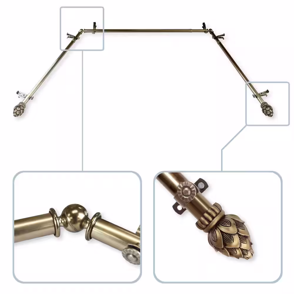 Rod Desyne Bud 13/16 in. Bay Window Single Curtain Rod in Antique Brass