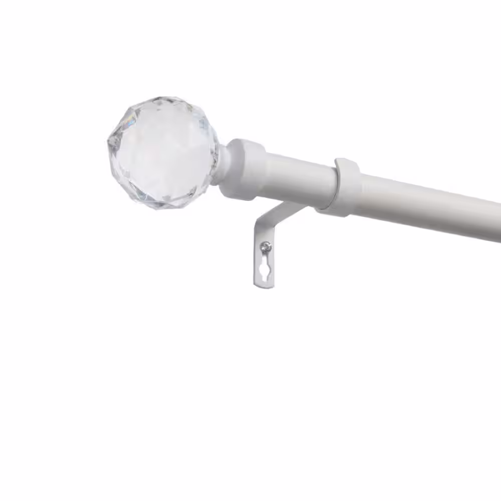 EXCLUSIVE HOME Crystal Ball Outdoor 84 in. - 160 in. Adjustable 1 in. Single Curtain Rod Kit in Matte White with Finial
