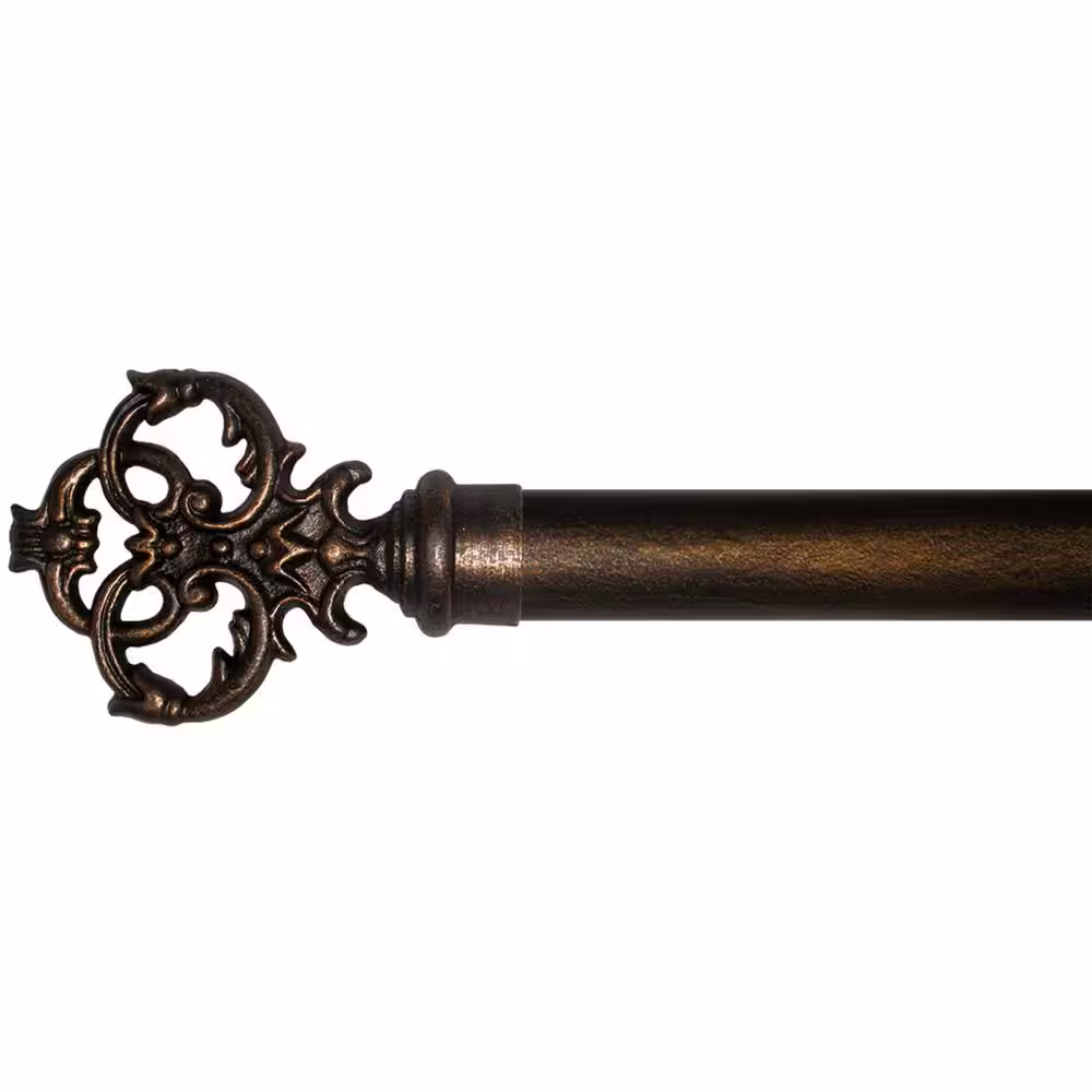 The Artifactory 7 ft. Fixed Length 1 in. Dia. Metal Drapery Single Curtain Rod Set in Antique Bronze with New Orleans Finial