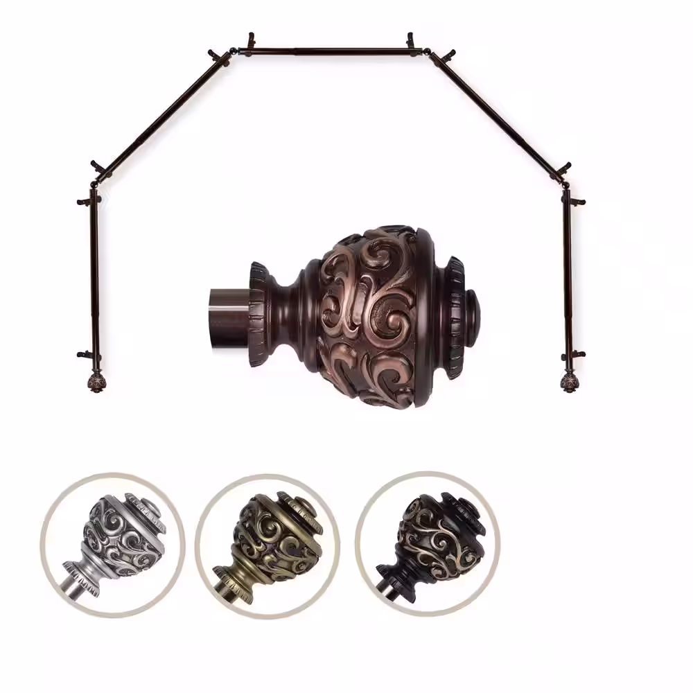 Rod Desyne Adora 78 in. - 144 in. Bay Window Single Curtain Rod in Cocoa with Finial