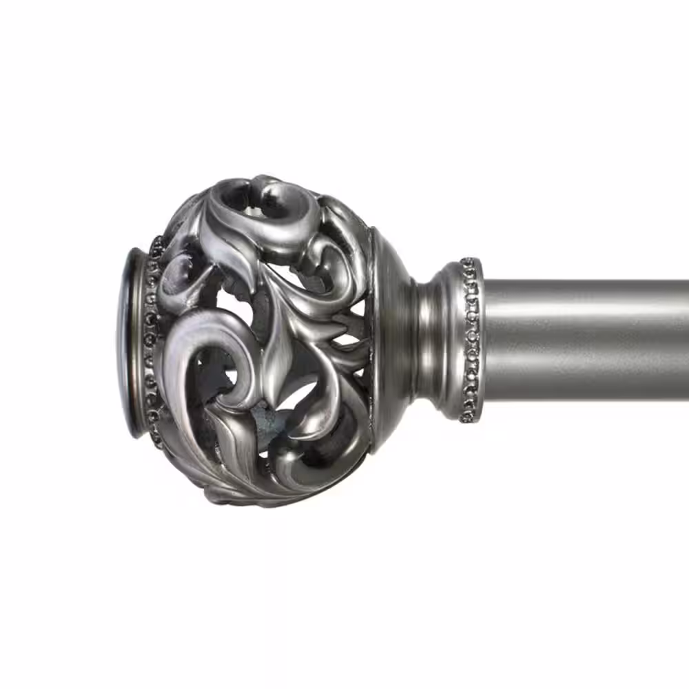 Decopolitan Open Ball 36 in. - 72 in. Adjustable Curtain Rod 1 in. in Venetian Silver with Finial