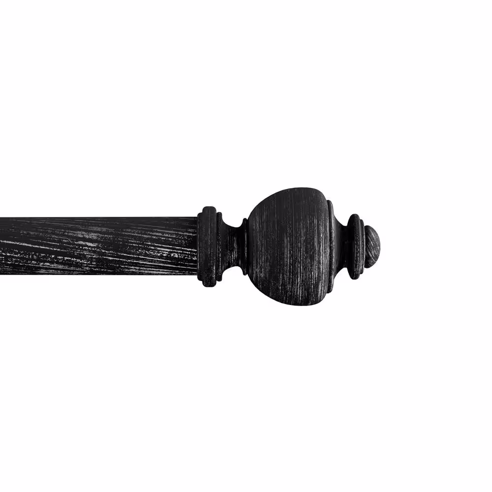 None 1 in. Telescoping 48 in. to 84 in. Single Curtain Rod - Modern Urn Finals and Mounting Hardware in Black