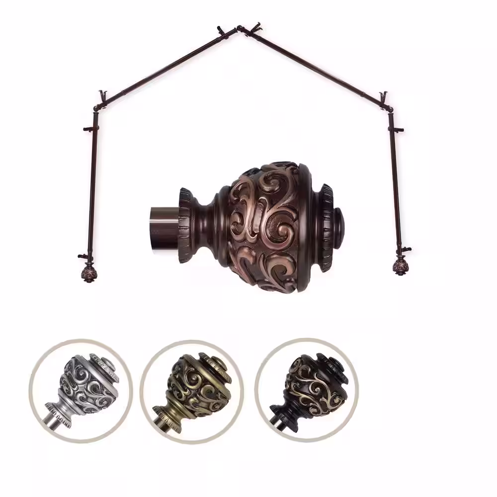 Rod Desyne 13/16 in. Bay Window Single Curtain Rod 20 in. in. - 36in., 38 in. - 72 in. in Antique Brass