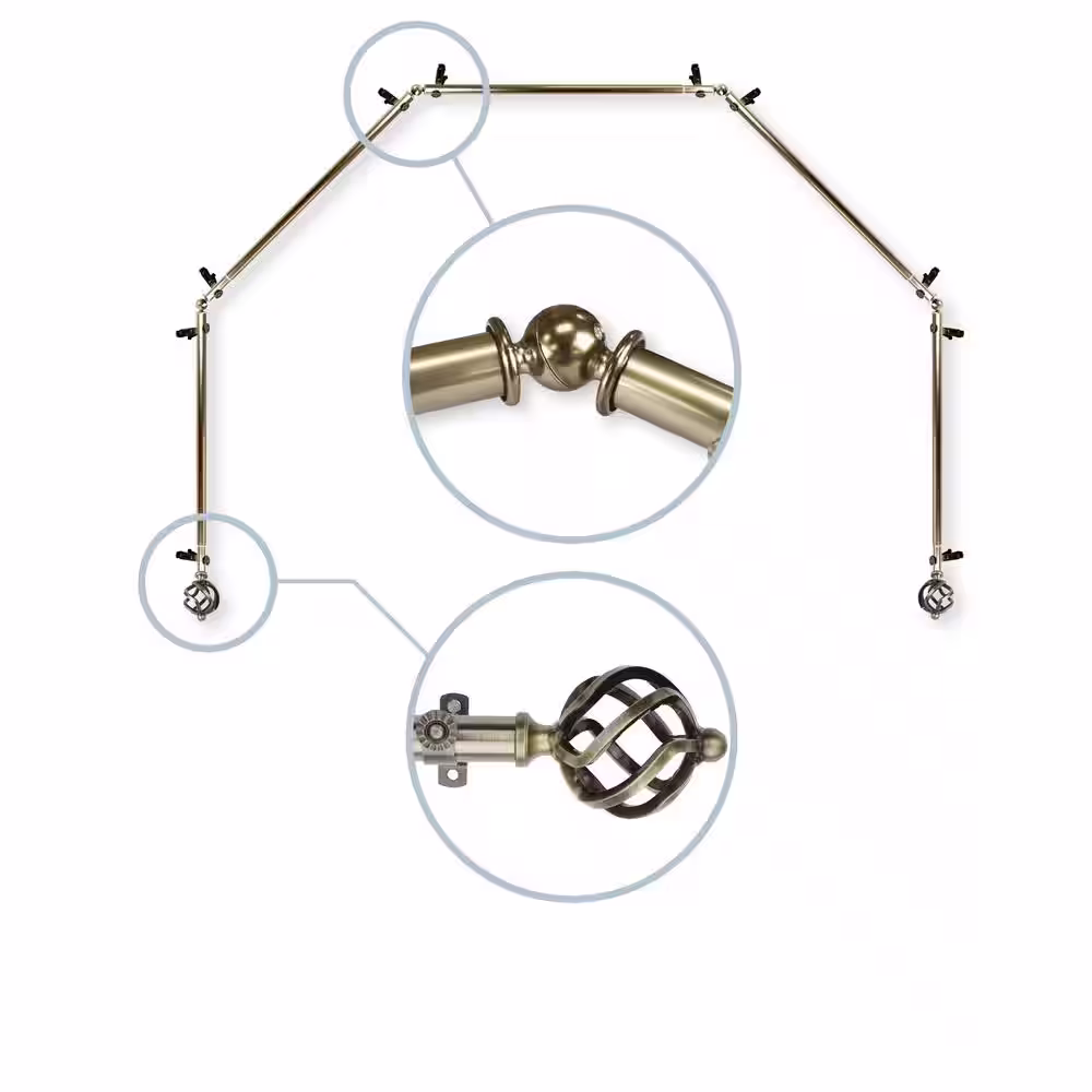 Rod Desyne Twist 5-Sided 13/16 in. Dia Bay Window Single Curtain Rod in Antique Brass
