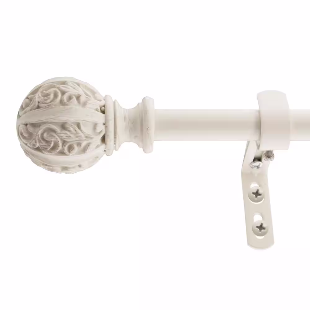 Decopolitan 5/8" Leaf Ball Bay Window Curtain Rod Antique White