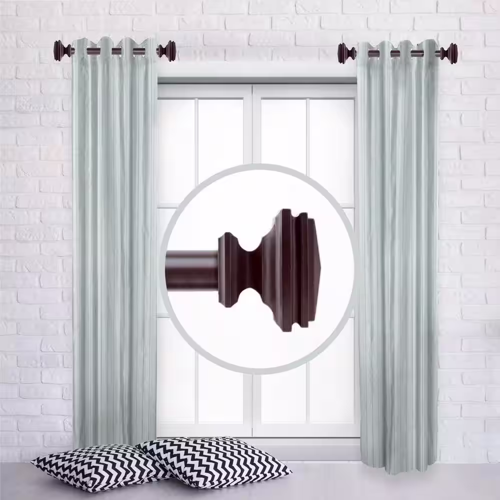 Rod Desyne Bedpost 12 in. - 20 in. L Adjustable 1 in. Dia Single Side Window Curtain Rod in Mahogany (Set of 2)