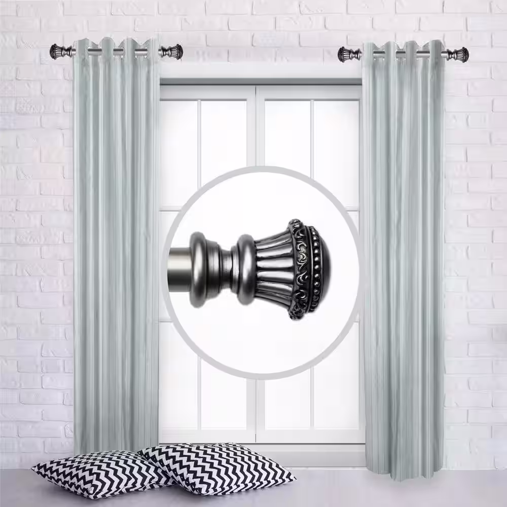 LORDEAR 88 in. - 132 in. Adjustable Single Curtain Rod 1 in. in Silver with Ball Finials