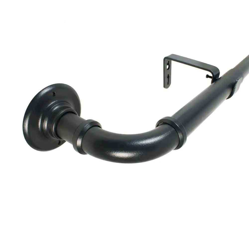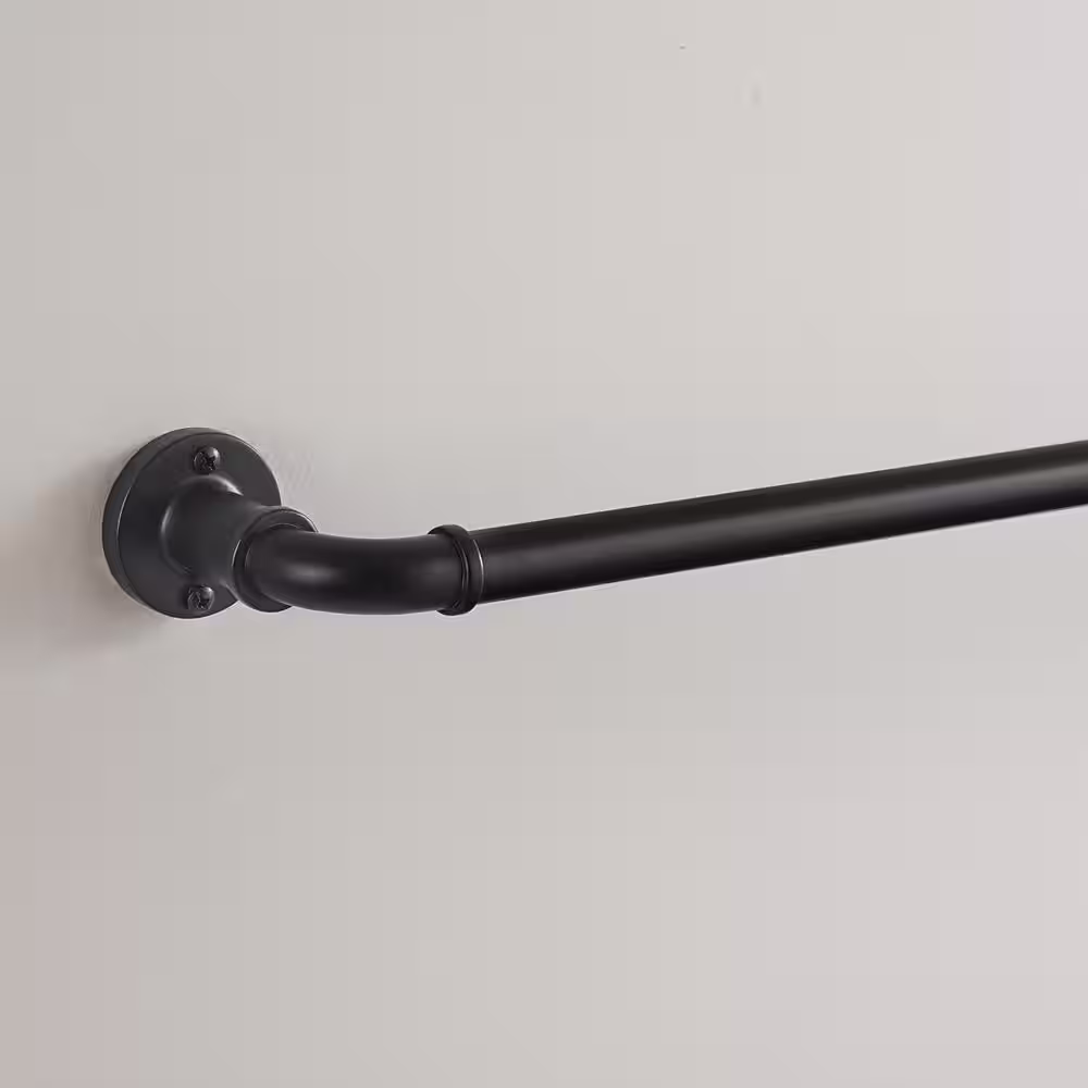 Eclipse Somerton 36 in. - 66 in. Adjustable Industrial Pipe Blackout Wrap 3/4 in. Curtain Rod in Matte Black