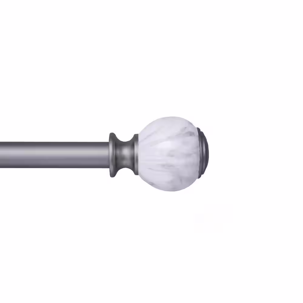 Kenney Khaleesi 36 in. - 66 in. Adjustable Single Curtain Rod 1 in. Diameter in Pewter Gray with Marble Ball Finials
