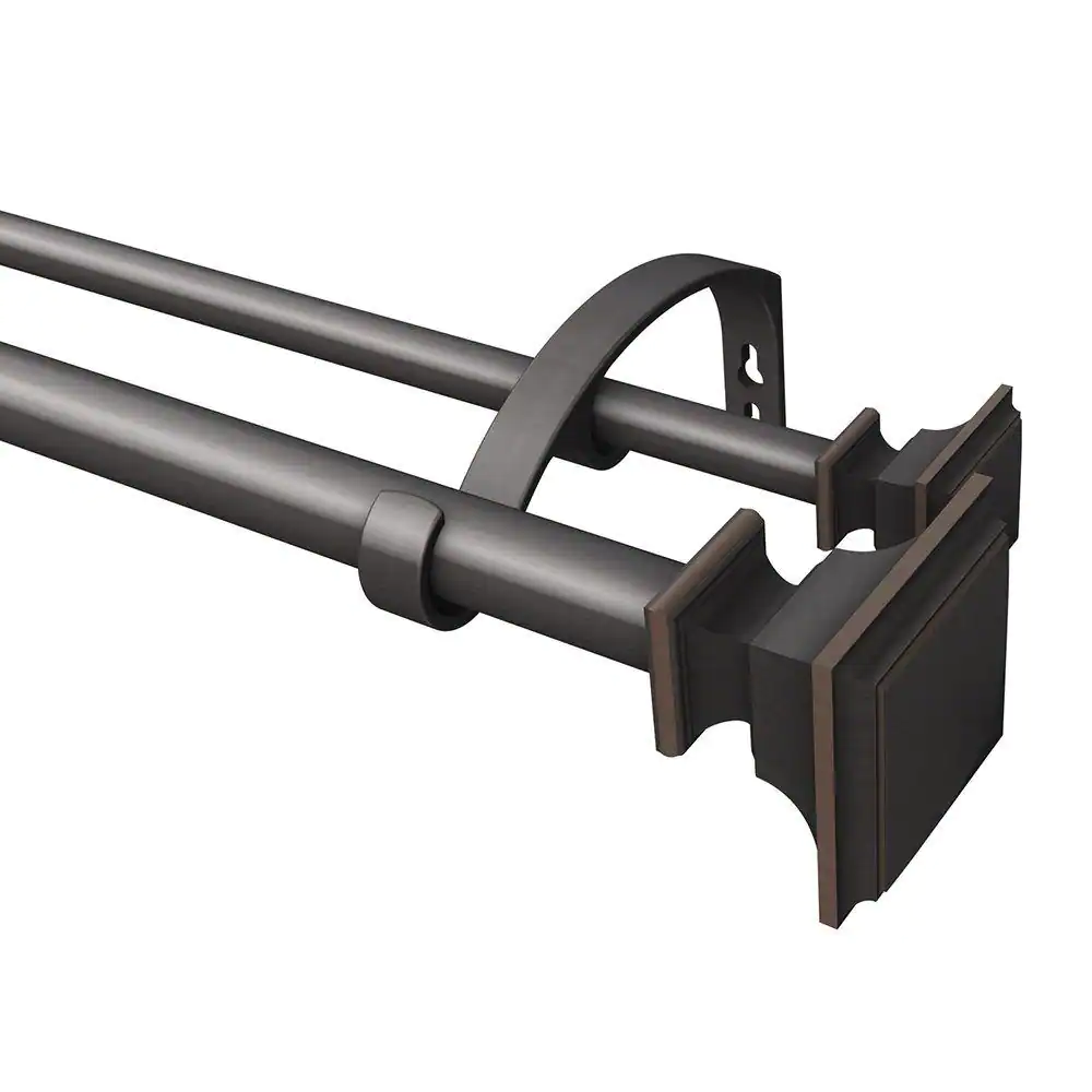 Home Decorators Collection 72 in. - 144 in. Telescoping 3/4 in. and 1 in. Double Curtain Rod Kit in Oil Rubbed Bronze with Flat Square Finials