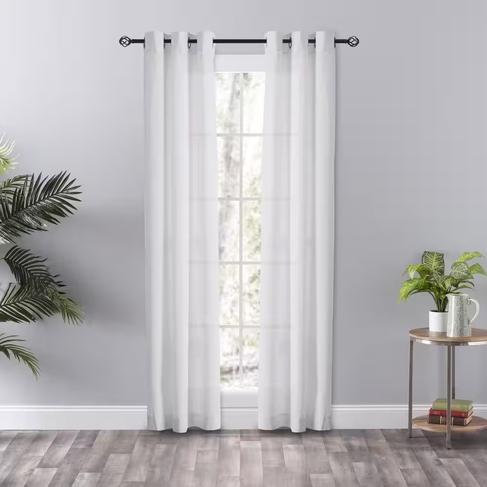 Ellis Curtain Serenity White Polyester/Cotton Semi Sheer Grommet Panel Pair - 80 in. W x 84 in. L