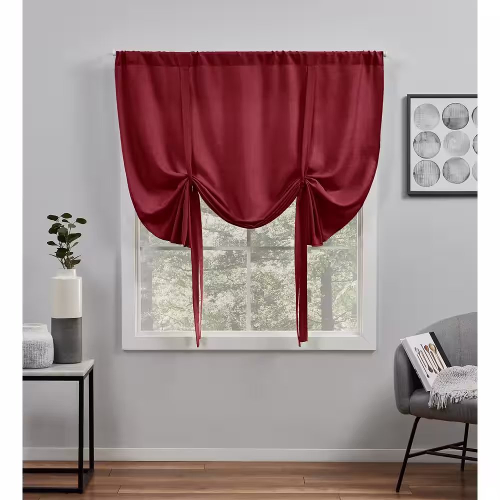 EXCLUSIVE HOME Loha Radiant Red Solid Light Filtering 3" Rod Pocket Tie Up Shade, 54 in. W x 63 in. L