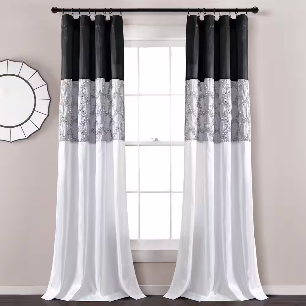 HomeBoutique Maria Window Curtain Panel Black/White Single 42 in. W x 84 in. L